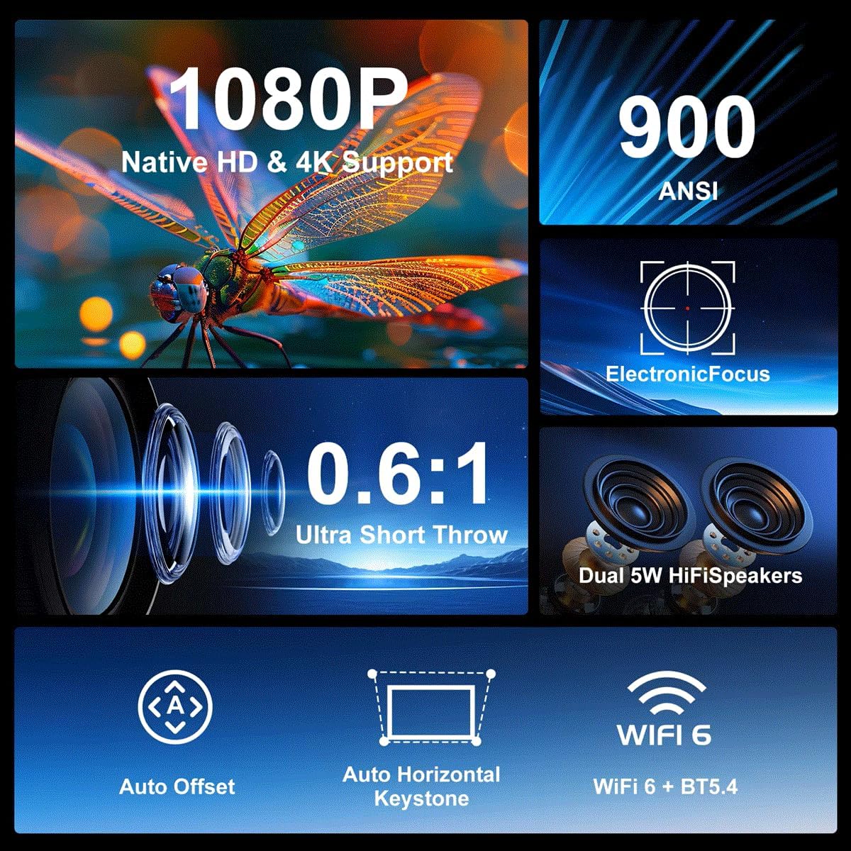 The inclusion of dual-band WiFi 6 is a significant feature, providing faster data transfer rates, greater network capacity, and reduced latency compared to older WiFi standards. This is essential for smooth, buffer-free streaming of high-bitrate 4K HDR content. Bluetooth 5.4 ensures ultra-stable connections to wireless headphones, speakers, game controllers, and keyboards, expanding the projector’s functionality far beyond its built-in capabilities.